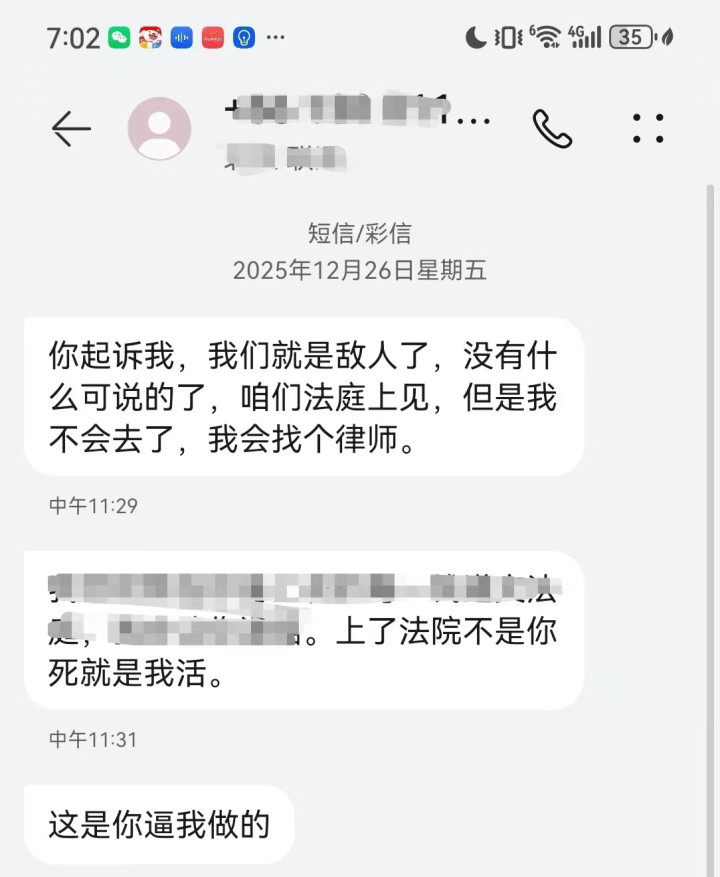 小玲表示,男友从始至终都在骗她,一直隐瞒有案底和有孩子的事实。据介绍,杨某在收到法院传票后,还发短信威胁小玲称,“你起诉我,我们就是敌人了……上了法院不是你死就是我活”。
